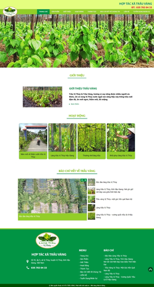 Thiết kế website Hợp tác xã Trầu Vàng - Chuyên cung cấp lá trầu vàng tại Vị Thủy, Hậu Giang
